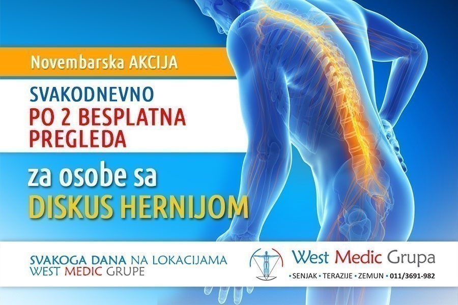 Novembarska akcija: Svakodnevno po 2 besplatna pregleda za osobe sa diskus hernijom.