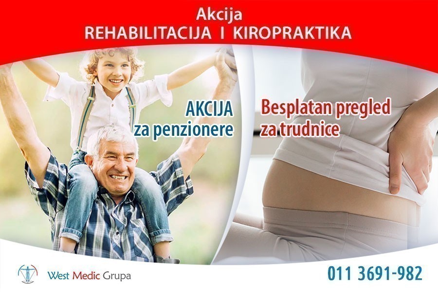 Septembarska akcija za penzionere: besplatan pregled specijaliste fizijatra + popust na terapije kiropraktike, spinalne dekompresije i fizikalne terapije.